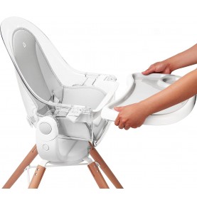 Du siège ergonomique transparent et du coussin amovible aux pieds en bois chics et au plateau lavable au lave-vaisselle, le Cloud 360° est unbonheur à utiliser au quotidien en toute simplicitéet sécurité.